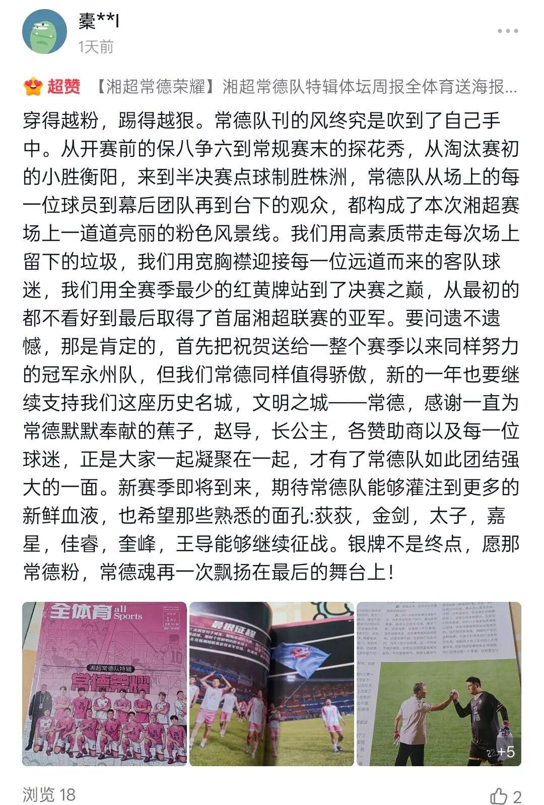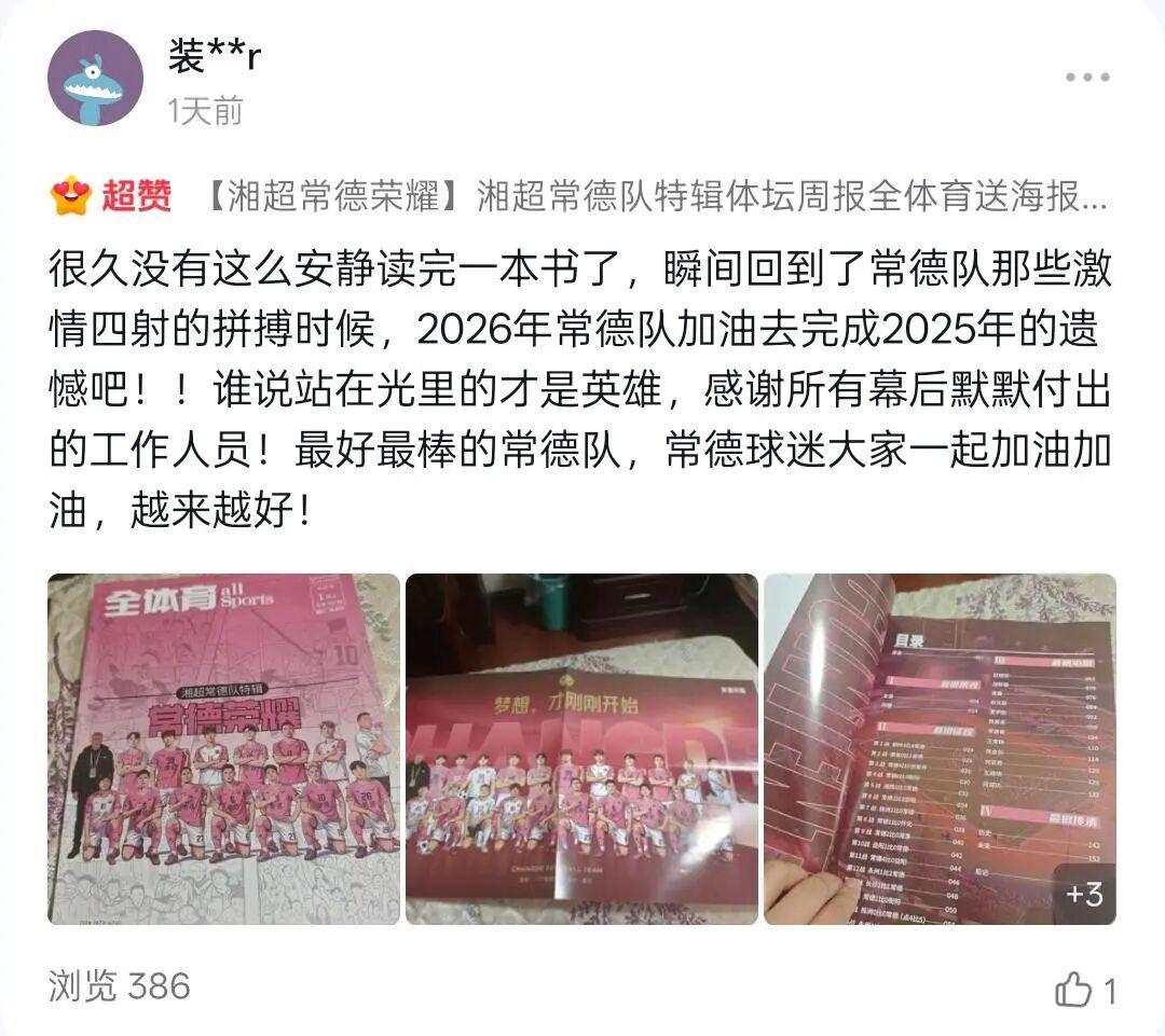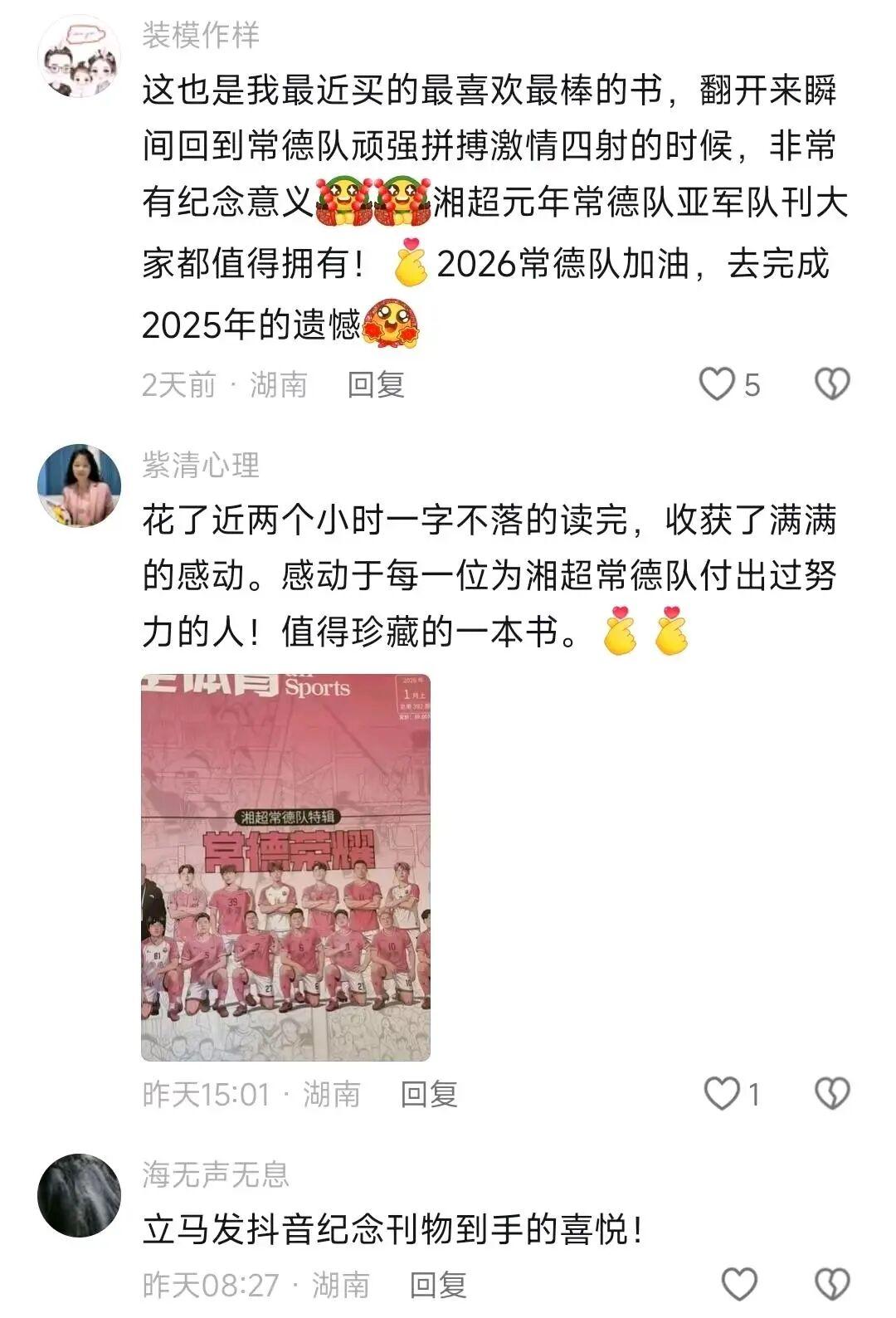• “人还没到家,队刊先到了,在外打拼的常德人,就用它弥补没能到现场看球的遗憾”